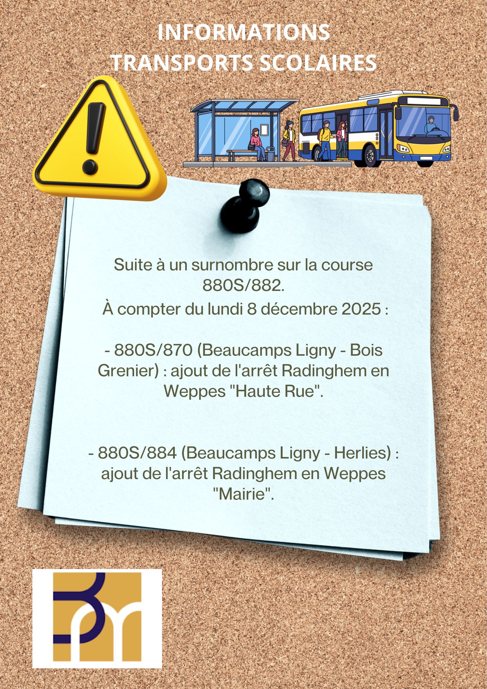 Arrêt n°2 : 880S/884 (Beaucamps-Ligy - Herlies) : ajout de l'arrêt Radinghem-en-Weppes "Mairie"